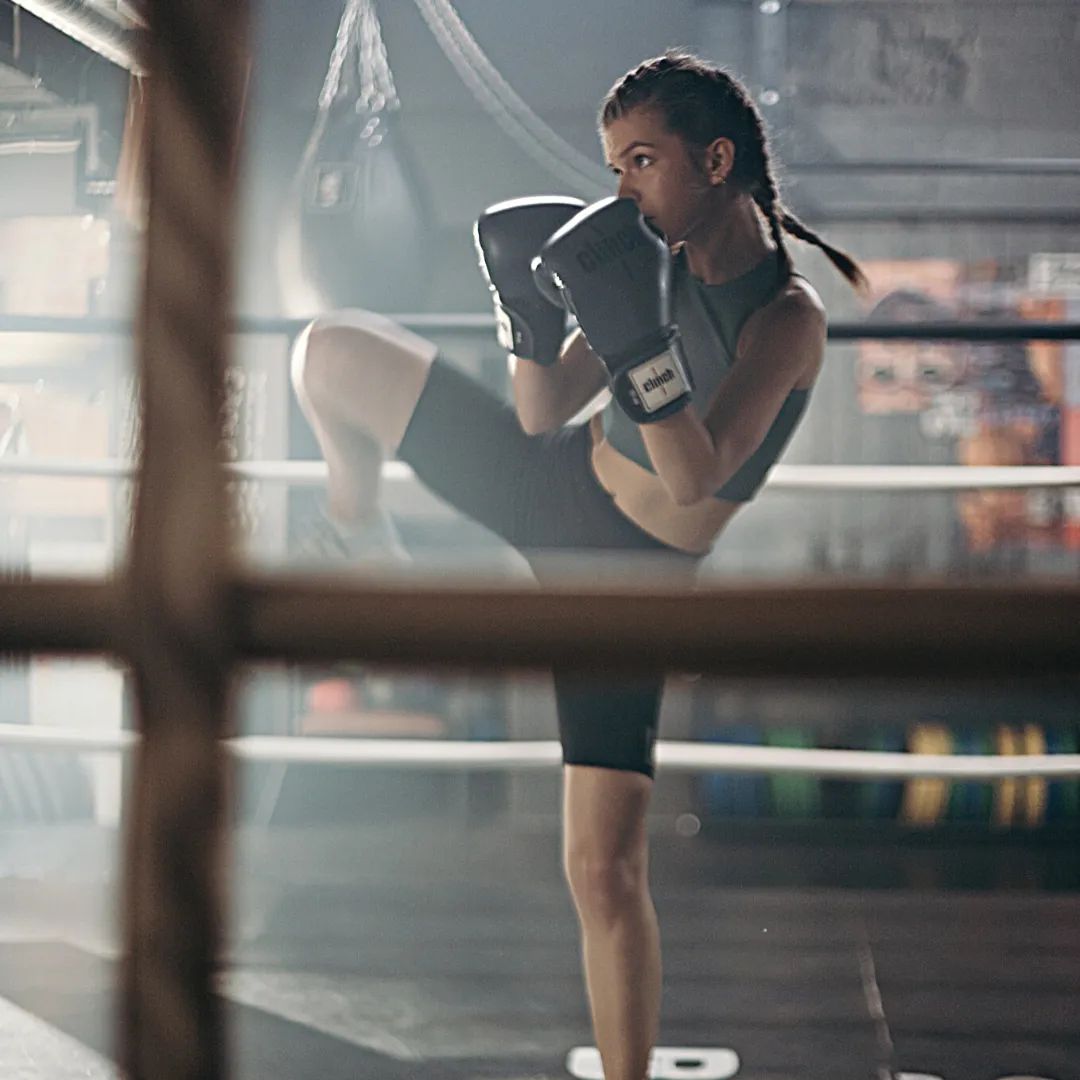 EVERY part of your body gets a workout in Kickboxing! That includes your arms, chest, stomach, hips, butt, thighs, and calves.
